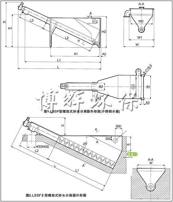 (2)砂水混合物從分離器一端頂部輸入水箱,混合液中重度較大的,如砂粒等將沉積于槽型底部,在螺旋推動(dòng)下,砂粒沿斜置的槽底提出升,離開液面后繼續(xù)推移一段距離,在砂粒充分脫水后經(jīng)排砂口卸至盛砂桶,而與砂水分離后的水從溢流口排出并送往廠內(nèi)進(jìn)水池。